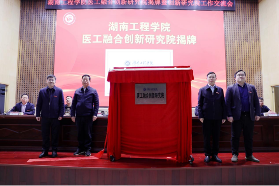 校党委书记黄昕,校党委副书记、校长易兵,湘潭市卫健委副主任赵新平和研究院执行院长张何共同为“太阳成集团tyc33455cc医工融合创新研究院”揭牌。医工融合创新研究院的成立,标志着学校在医工融合领域迈入新阶段。