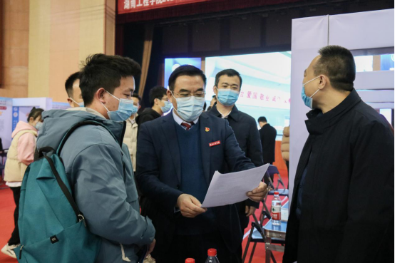 “这次带来了多少招聘岗位?”“现场报名情况如何?”“有没有已经签约的学生?”校党委书记陈岳堂、校长易兵、副校长张小刚等来到见面会现场,详细了解毕业生的就业情况和双选会具体工作,与用人单位亲切交谈,了解用人单位的人才需求情况,并对其到校招聘表示感谢。同时,校领导们还认真翻阅求职毕业生简历,为其“把脉”,并勉励毕业生保持积极乐观的求职心态,充分展现出湖工学子良好的综合素质。湘潭市岳塘区人力资源和社会保障局的专业人士来到现场为毕业生提供就业和社会保障宣传、面试指导等服务,帮助毕业生高效求职、顺利就业。