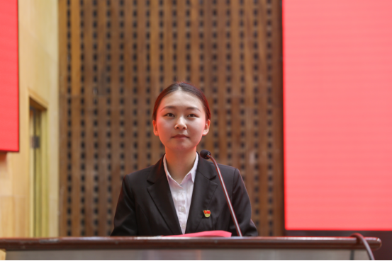 “立足新时代新征程,中国青年的奋斗目标和前行方向归结到一点,就是坚定不移听党话、跟党走,努力成为堪当民族复兴重任的时代新人”,电气与信息工程学院自动化1901班张子鑫作为新党员代表发言。
