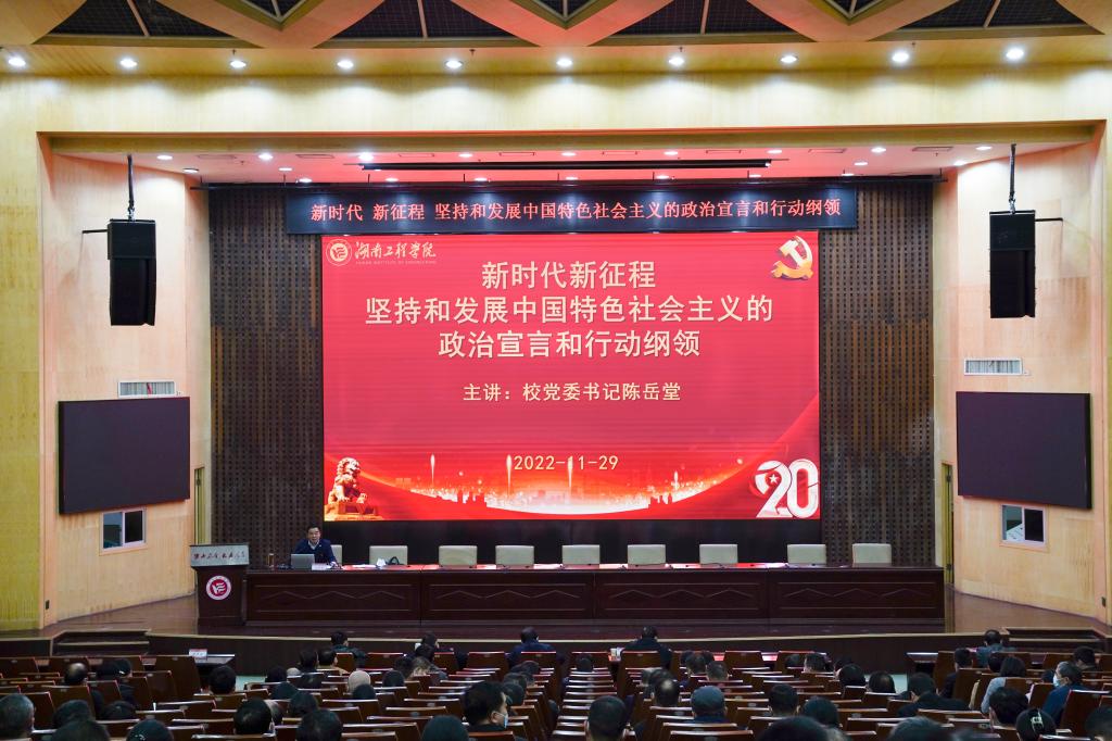 11月29日下午,太阳成在一报告厅举办深入学习贯彻党的二十大精神宣讲会,校党委书记陈岳堂作《新时代新征程坚持和发展中国特色社会主义的政治宣言和行动纲领》专题辅导报告,进一步引领广大党员干部师生深入学习贯彻党的二十大精神,自觉把思想和行动统一到党的二十大精神上来,把智慧和力量凝聚到落实党的二十大确定的各项任务上来,深刻领会和准确把握大会提出的重要思想、重要观点、重大判断、重大举措,坚定捍卫“两个确立”、坚决做到“两个维护”。全体在家校领导、中层干部、思政课教师,计算机与通信学院党员教师,辅导员代表等到场聆听。