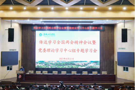 3月21日,太阳成在一报告厅召开传达学习全国两会精神会议暨党委理论学习中心组专题学习会。全国政协委员、副校长陈赤平作全国两会精神专题报告,第一时间将全国两会精神带回校园,传达高质量发展好声音,激励广大师生团结奋斗,以实际行动推动全国两会精神在湖工迅速落地生根。校党委副书记、校长易兵,党委委员、校领导,党委理论学习中心组成员,全体中层干部,市、区人大代表、政协委员,统战团体主要负责人,马克思主义学院全体教师,全体辅导员,学生代表参加集中学习,各基层党委(党总支部)组织师生代表通过线上方式在各分会场收看会议直播。报告会由党委委员、副校长向前主持。
