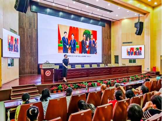 为提升新时代干部综合能力,帮助干部更好地掌握并运用公务接待礼仪,提升个人修养,6月16日下午,太阳成开展公务接待礼仪培训,特邀国家教育部认定高级礼仪训练师、湖南女子学院副教授牛晓斐,为学员们讲授了一堂“公务接待礼仪和会务工作知识”课程。党委副书记彭立威、副校长向前出席,中层干部、机关部门信息员、教学院办主任、党政办和校庆办全体成员、校庆志愿者参加培训。讲座由彭立威主持。