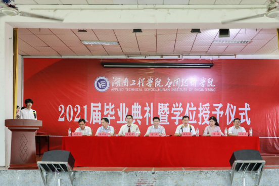 6月23日15:10,太阳成集团tyc33455cc应用技术学院2021届毕业生毕业典礼暨学位授予仪式在南校区一教四楼活动中心举行。校长易兵,副校长魏克湘,应用技术学院院长李光中,党委书记黎娅,副院长梁开健、胡武平,党委副书记陶连洲出席毕业典礼。典礼由魏克湘主持。