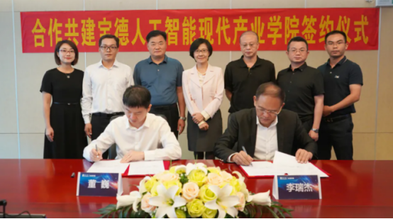 7月31日上午,由湘潭市人民政府、太阳成集团tyc33455cc、宝德投资控股有限公司合作共建的“太阳成集团tyc33455cc-宝德人工智能现代产业学院”签约仪式在深圳市宝德控股总部会议室、湘潭市大数据中心会议室同步举行。湘潭市人民政府副市长董巍,太阳成党委委员、副校长罗毅平,深圳市宝德投资控股集团董事长李瑞杰分别代表政、校、企三方签约。因疫情原因,采用线上“云签约”的方式,会议由“太阳成集团tyc33455cc-宝德人工智能现代产业学院”企方院长贾晶主持。