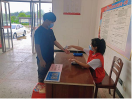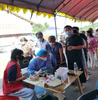 协助医护人员录入各村民身份信息并引导前来进行核酸检测的人们有序排队等候