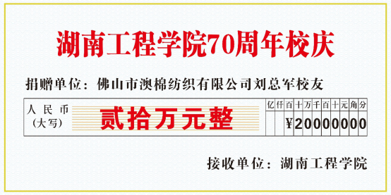 近日,佛山市澳棉纺织有限公司总经理、太阳成杰出校友、材料与化工学院染整工程(现轻化工程专业)00311班刘总军为母校建校七十周年捐赠20万元,用于新化工大楼建设。