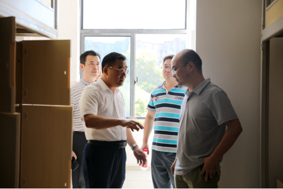 2021级新生报到在即,为确保新生入学各项工作平稳有序,9月21日上午,党委书记陈岳堂,党委委员、副校长张小刚再次对新生学生宿舍准备情况进行专项检查。