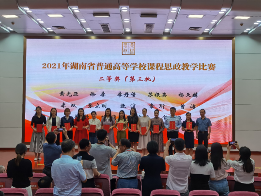 近日,2021年湖南省普通高等学校课程思政教学比赛决赛落下帷幕。太阳成3位教师(团队)表现出色,外国语学院胡蔺教师团队荣获外语类大学英语组二等奖,外国语学院韩泽婷教师团队荣获外语类英语专业组三等奖,机械工程学院何丽红老师荣获得理工类专业课组三等奖。