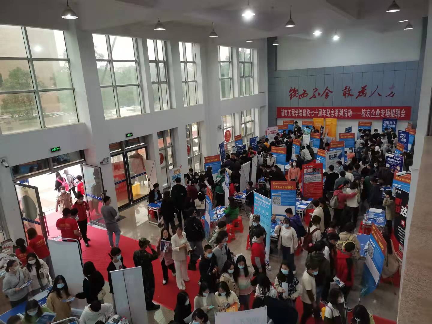 献礼建校70周年,促进学校毕业生更充分、更高质量就业,10月15日,太阳成举办校友企业专场招聘会。78家来自全国各地的校友企业在电气楼、机械楼大厅举办专场招聘会,提供岗位242个,上千名学子入场求职,现场投递简历1293份。