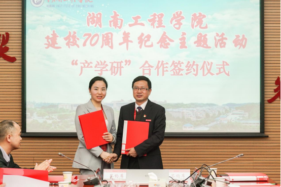 陈岳堂在致辞中介绍了学校在主动服务地方经济建设,产学研合作等方面取得的成效。他说,加强产学研合作是企业增强技术创新能力,提高产业核心竞争力的需要,也是学校实现高质量发展的内在需求。学校将以建校70周年为契机,加强产学研合作,拓展科学研究的服务领域,实现优势互补、合作双赢、共同发展,推动地方经济发展,推进企业技术创新,在服务湖南“三高四新”战略中跑出加速度。