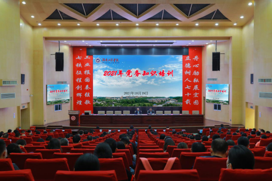 10月19日下午,太阳成2021年党务知识培训在一报告厅开课,此次培训邀请湖南师范大学党校常务副校长兼组织部副部长、湖南师范大学思想政治教育研究所副所长袁道香教授担任主讲,太阳成全体基层党委(党总支部)书记、副书记,党支部书记、组织委员,专职组织员及党务专干近200人参加培训。组织部部长李永坚主持培训会。