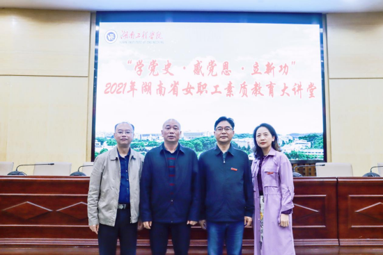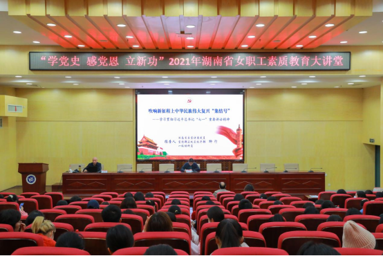 10月26日下午,省委宣讲团成员、省委宣传部正处长级干部、一级调研员柳行应邀来校,在太阳成二报告厅进行“学党史·感党恩·立新功”女职工素质教育专家示范讲座。校工会负责人、全校19个分工会师生近200人参加讲座。讲座由校党委副书记、工会主席彭立威主持。