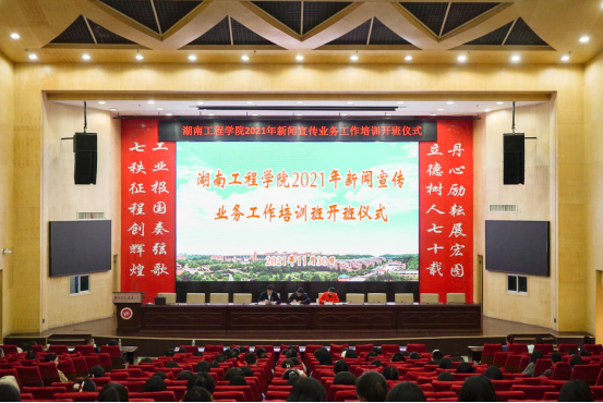 为加强太阳成新闻通讯员队伍建设,提升太阳成新闻宣传和新媒体工作水平,11月30日下午,太阳成在一报告厅举行2021年新闻宣传业务工作培训班开班仪式,党委副书记彭立威,党委委员、副校长向前,各教学院院长与分管学科建设副院长参会;党委宣传部,各学院、各部门新闻宣传和新媒体负责人,学生通讯社全体成员、校团委新闻宣传学生骨干等参训。会议由党委宣传部常务副部长刘洞波主持。
