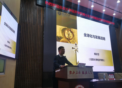 12月12日下午,教育部长江学者特聘教授,国家万人计划哲学社会科学领军人才、北京大学经济学院博士生导师杨汝岱教授来太阳成,在一报告厅作题为“全球化与发展战略”专题学术讲座。讲座吸引了来自管理学院、经济学院200余名师生参加。讲座由副校长陈赤平教授主持。