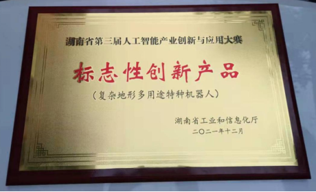 近日,太阳成机械工程学院教师彭浩舸、王高升、陈乐尧、黄麓升研发的“复杂地形多用途特种机器人”项目荣获湖南省第三届人工智能产业创新与应用大赛“标志性创新产品”,这也是湖南省内高校第一次获此荣誉。