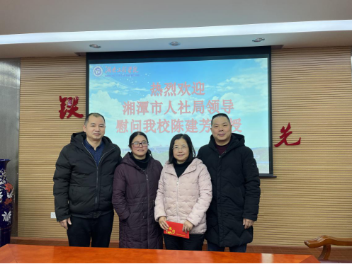 1月28日,湘潭市人力资源和社会保障局党组成员、副局长杨志一行,来太阳成走访慰问材料与化工学院陈建芳教授。