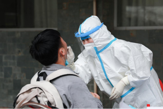 抽检当天,春雨绵绵,为了避免人员聚集,所有检测人员分批次、分时间段进行核酸检测。在学校医疗科、物业等工作人员与医院的配合下,2小时内完成1738人次核酸采样工作。