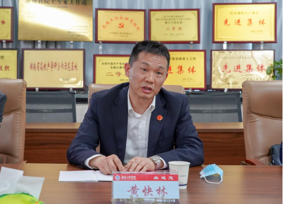 4月21日下午,长沙师范学院党委委员、纪委书记俞贵邦,党委委员、副校长黄快林来太阳成考察交流,太阳成党委委员、副校长罗毅平在电气楼407会议室接待来宾,人事处参加交流会。