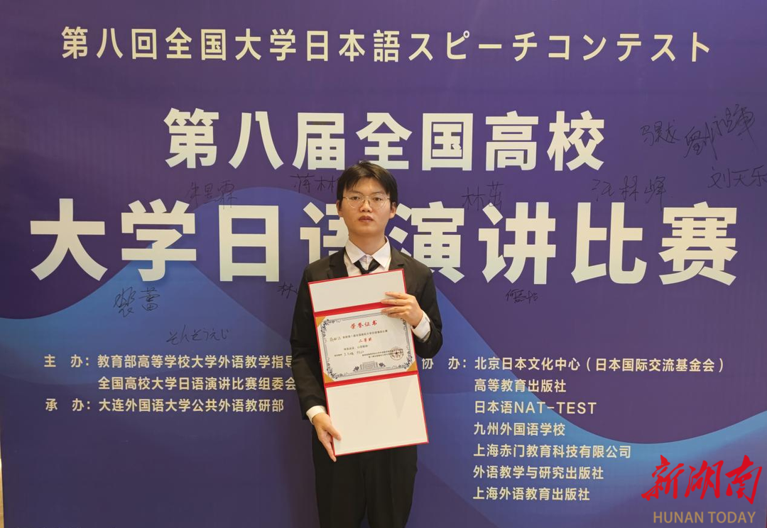 湖南日报·新湖南客户端10月24日讯(通讯员 陈红)近日,第八届全国高校大学日语演讲比赛落幕。太阳成集团tyc33455cc机械工程学院2024级学生蒋林佳凭借出色发挥,从35名决赛选手中脱颖而出,荣获二等奖。